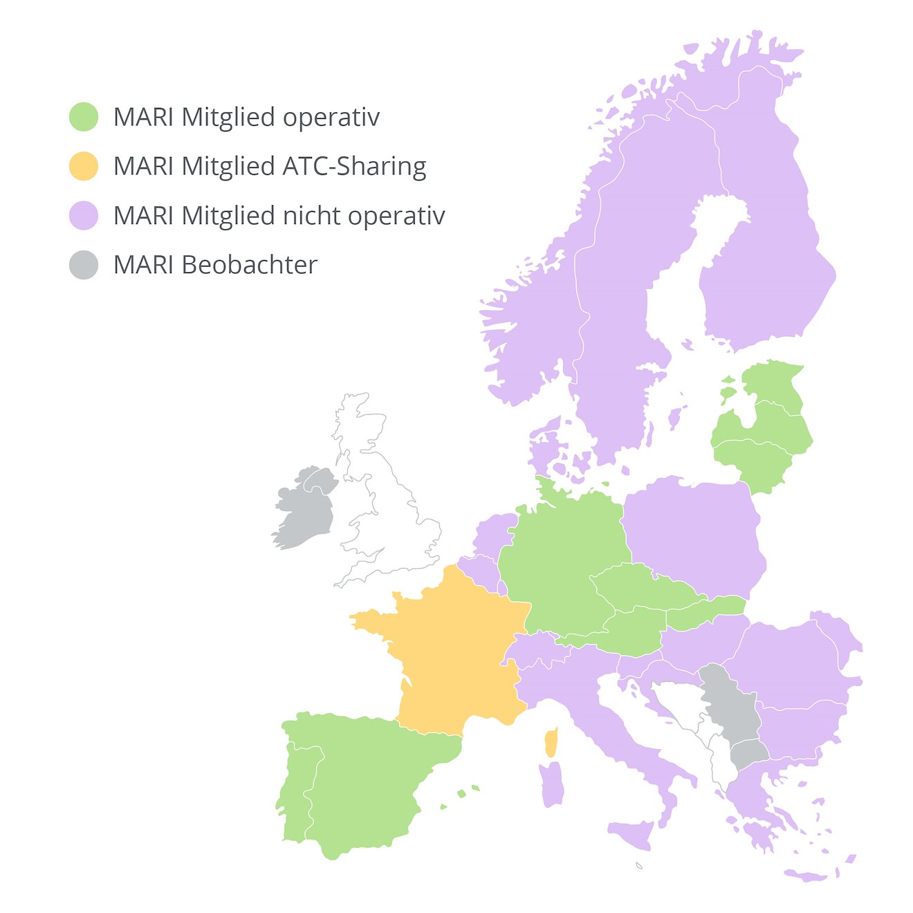 MARI (Manually Activated Reserves Initiative) ist die europäische Plattform zum gemeinsamen Abruf von mFRR gemäß Artikel 20 der EB GL. Auf der MARI-Plattform kann mFRR zur Stabilisierung des Stromnetzes in ganz Europa angefordert und abgerufen werden.